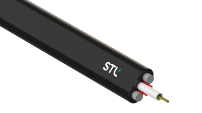 STL DROP-LITE Flat Drop Dielectric Fiber Optic Cable offers the ease of installation in an easy access, single-tube design. This cable has optical Fibers presented in tube filled with a thixotropic gel, and is enclosed in a thermoplastic sheath. The cables have two embedded strength members for anti-buckling property. The dielectric version eliminates any bonding and grounding requirements.