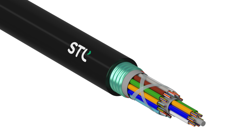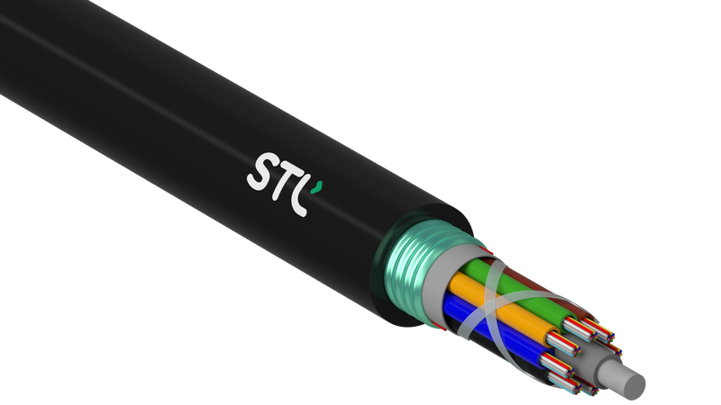 STL ARMOR-LITE Multitube Single Jacket Steel Tape Armored Cables are suitable for direct burial as well as for duct applications. ARMOR-LITE comes with dry core technology, the buffer tubes contain water blocking filling gel and the cable core is surrounded with water-swellable tape to prevent water ingress in the cable. The buffer tubes are stranded around the central strength member using reverse oscillation stranding method forming the cable core. A Corrugated Steel Tape armor surrounds the cable core with thermoplastic jacket placed over the armor layer making the cable robust and installation friendly.