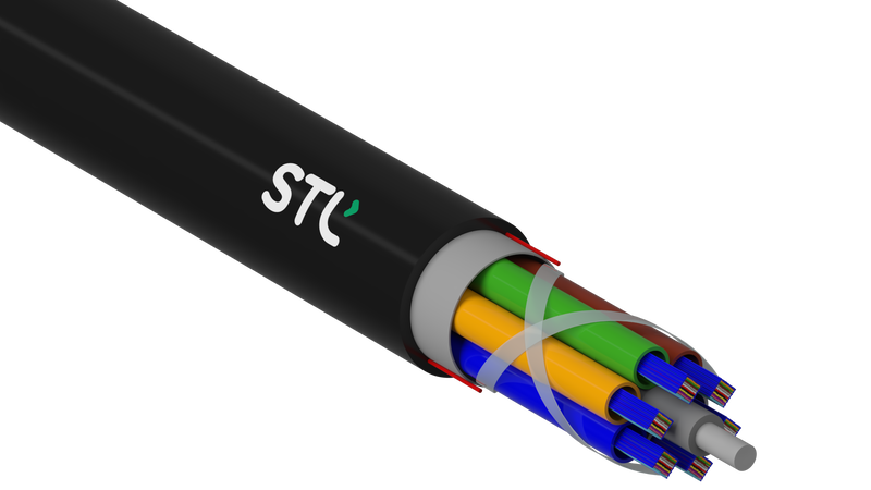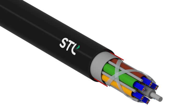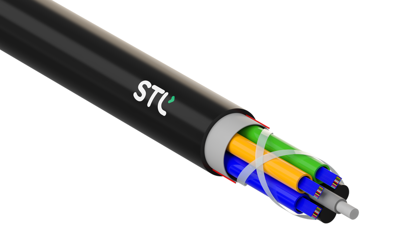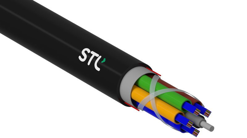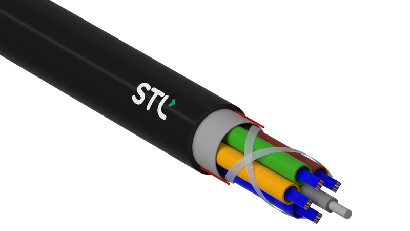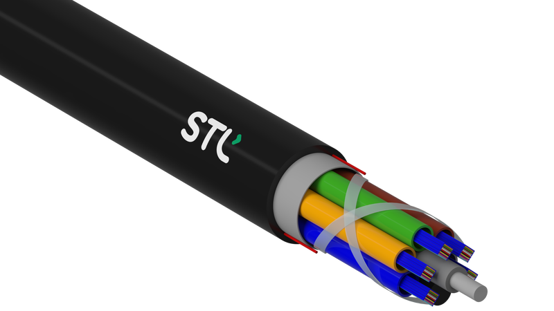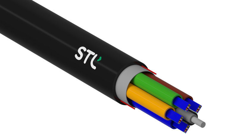 STL RIBBON-LITE Multitube Single Jacket Cable combines robust performance for duct installations with the productivity of high count mass fusion splicing. Twelve optical Fibers are arranged into ribbon units by placing the Fibers in a flat array of color-coded Fibers bonded together by a UV-curable acrylate matrix. RIBBON-LITE comes with gel free technology, the buffer tubes contain water swellable yarns and is surrounded with water-swellable tape to prevent water ingress in the cable. The buffer tubes are stranded around the central strength member using reverse oscillation stranding method forming the cable core. This cable offers an outstanding solution for demanding high-growth, high-bandwidth communications applications like data centers, equipment connections within